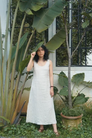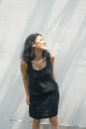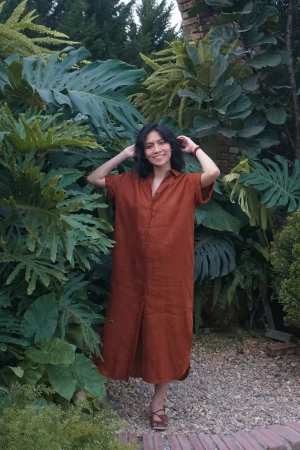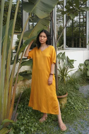 Clara Linen Wrap Dress with Waist Belt in Orange